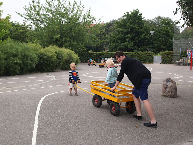 Vi har lavet en masse sjove ting. I hverdagene har vi jo Eas dagplejebarn så vi besøger forskellige legepladser, hvor vi leger og derefter spiser frokost. De fleste eftermiddage bliver vi oppe og leger eller bader i badebassin på altanen. Som familie har vi har har bl.a. været i Knuthenborg, Zoo og Den Blå Planet. Desuden har vi brugt lidt tid ude hos Viggas older, som har campingvogn. Vejret har jo været super godt.